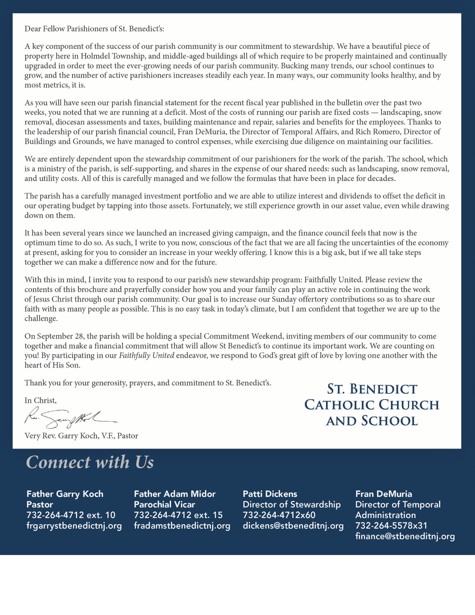 We have launched our Faithfully United stewardship program. We are calling on our parishioners to prayerfully consider their Sunday offertory contributions so we can continue to thrive as a parish and community. Scan the QR Code to complete your Commitment Card on your phone.